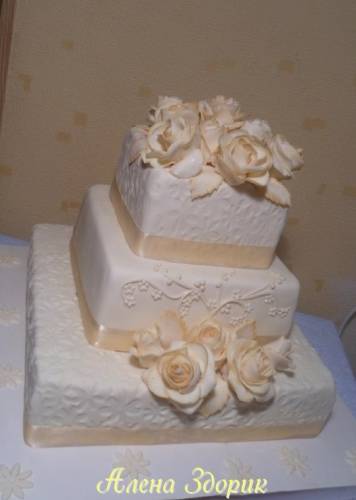 » Свадебеный торт с розами цвета шампань