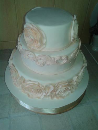 Свадебный 3-х ярусный торт с декоративными розочками из съедобной ленты( из сахарной мастики)